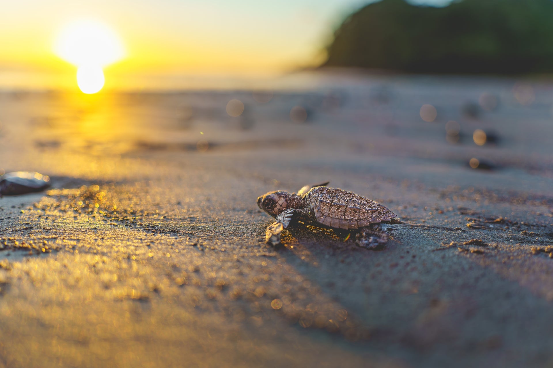 Afternoon Ascent - Olive Ridley Hatchling at Sunset | Costa Rica Wildlife Print