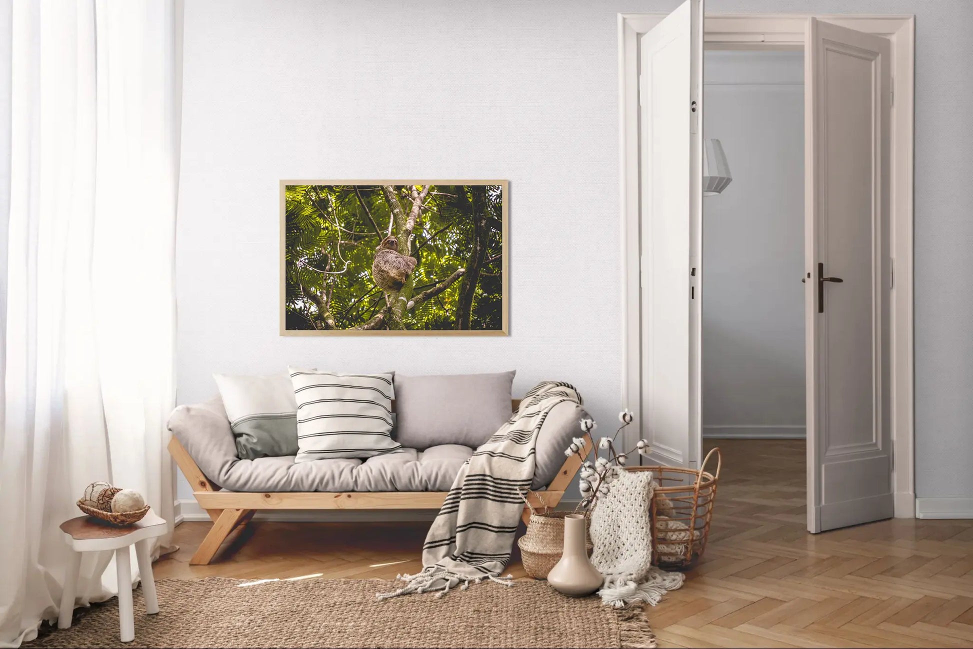 Jungle Dreamer captures a three-toed sloth nestled high in the Costa Rican rainforest. Framed by ferns and filtered sunlight, the sloth’s relaxed pose invites you into the gentle rhythm of the jungle. This peaceful portrait reminds us to slow down and savor life’s quiet beauty.