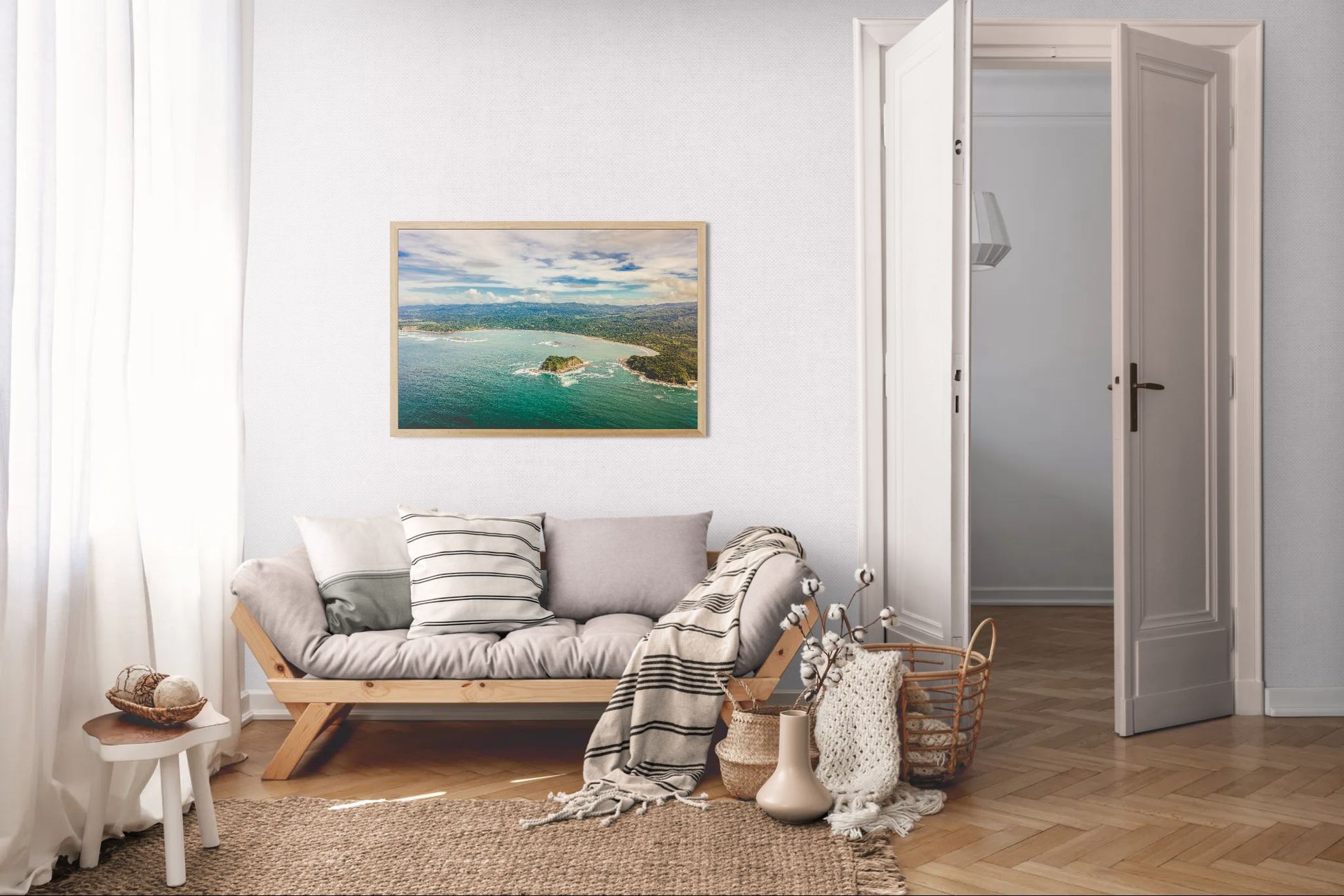 This panoramic portrait of coastal perfection captures the tranquil rhythm of ocean and land from above... an invitation to breathe deeply, dream wildly, and feel the quiet pull of nature’s harmony. Ideal for bringing spaciousness, color, and calm to any environment.